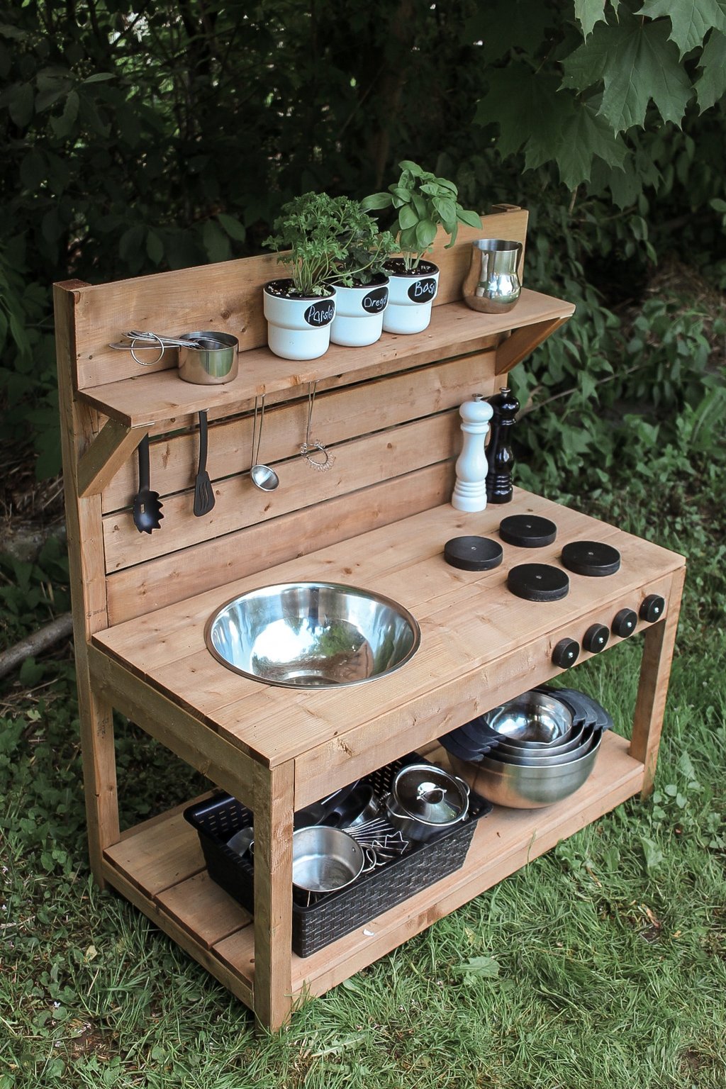 The Mini Mud Kitchen was designed with toddlers and small spaces in mind.